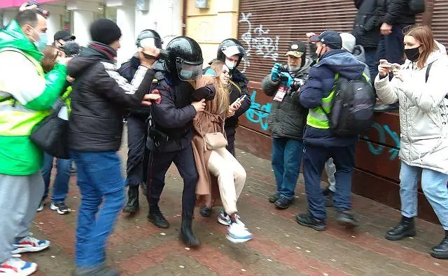 После этих слов начались первые задержания. Некоторых участников шествия валили на асфальт и даже били дубинками. ОМОНовцы избирательно выхватывали из толпы сначала молодых людей, затем дошла очередь и до девушек.