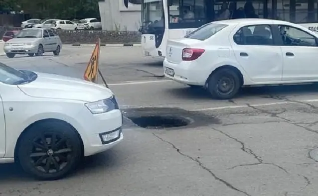 Добавим, что асфальт в этом месте провалился в воскресенье, 16 мая. Из-за образовавшейся ямы водители вынуждены добираться до центра по пробкам. Дорожники засыпали яму, но проблему это не решило.
