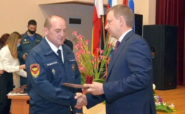 Одним из спасателей, получивших награду, стал водитель 55-й пожарно-спасательной части 1-го пожарно-спасательного отряда ГУ МЧС России по Ростовской области Сергей Ночевной, который помог спасти из огня двух детей.