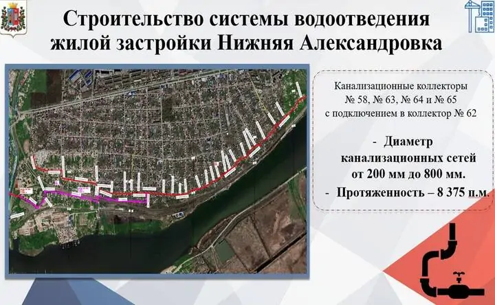 В Ростове строится канализационный коллектор №62 который обеспечит качественной системой водоотведения более 100 тысяч жителей новых районов на территории «старого» аэропорта, левобережной зоны и частного сектора в нижней Александровке. Жители последнего района несколько десятилетий мечтали уйти от канализационных ям и теперь получат такую возможность, сообщил на расширенном планёрном совещании глава администрации Ростова Алексей Логвиненко.