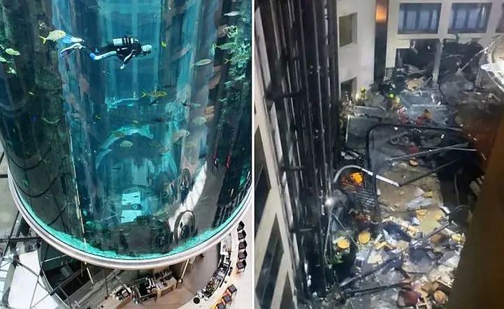 Аквариум AquaDom вмещал миллион литров воды, в нём плавали около 1500 тропических рыб ста разных видов. Вода из аквариума вместе с рыбами вылилась на улицу, большинство из них погибли.