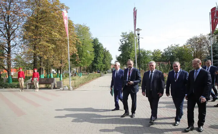 Перед семинаром Василий Голубев посетил в Новошахтинске детский парк «Город детства» и специализированную выставку, организованную производителями товаров для благоустройства: тротуарной плитки, освещения, озеленения, малых архитектурных форм.
