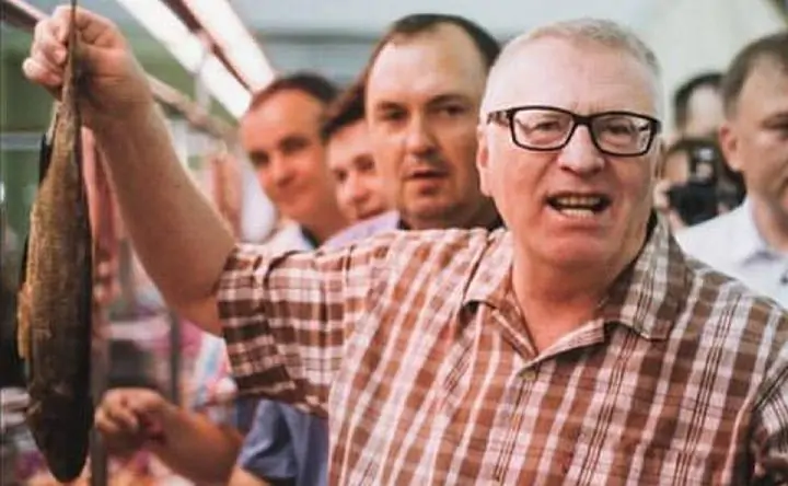 Первым Жириновский тогда посетил мясной павильон и интересовался у продавцов, местное ли мясо и сколько оно стоит. При этом один из его помощников начал втыкать в тушки нитрат-тестер.
