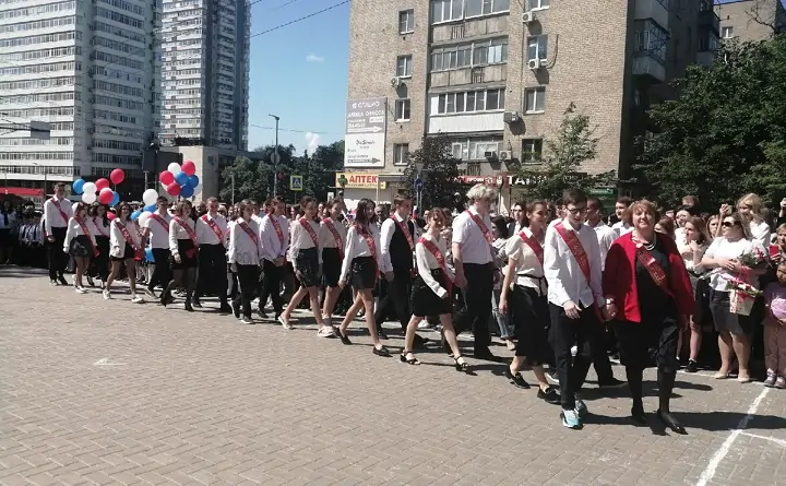 Журналист donnews.ru посетил школу № 78 на Красноармейской. За два последних пандеймийных года это первый выпуск, который прощался со школой без ковидных ограничений: во дворе школы родители, выпускники и учителя были без масок и социальной дистанции. Ребята пришли на праздник в торжественных белых рубашках, а некоторые девочки нарядились в голубые костюмы.