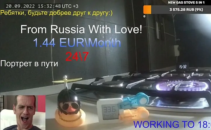 Стример из Ростова под ником russiangas1 в круглосуточном режиме ведёт на сервисе Twitch (Роскомнадзор составил в отношении сервиса два административных протокола за неудаление фейков) трансляцию того, как у него работает газовая плита. Фоном для стрима играют песни «Сектора газа», «Интернационал», «Катюша», «советский» марш из компьютерной игры Red Alert и другие.