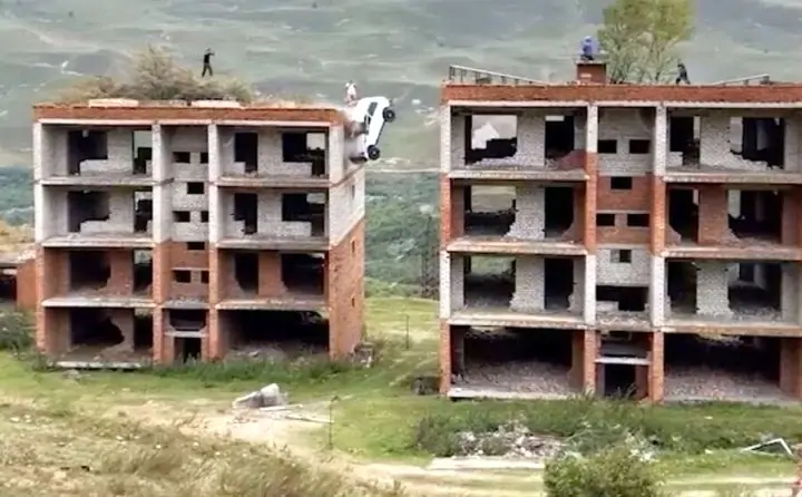 Судя по видео, которое Чеботарёв опубликовал в своём Telegram-канале, машина не набрала нужную скорость, во время полёта врезалась в стену здания и упала вниз. Блогер выжил.