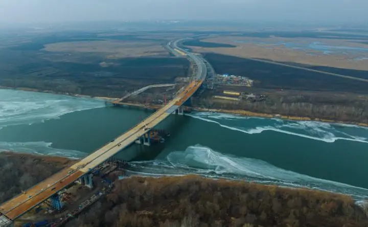 В Ростовской области установили все пролёты и сомкнули мост, который возводят в Аксайском районе через реку Дон. Протяженность нового искусственного сооружения 1901 метр. В Росавтодоре заверили, что проехаться по мосту, который входит в новый 35-километровый скоростной участок М4 «Дон» — обход Аксая, можно будет уже в июне этого года.