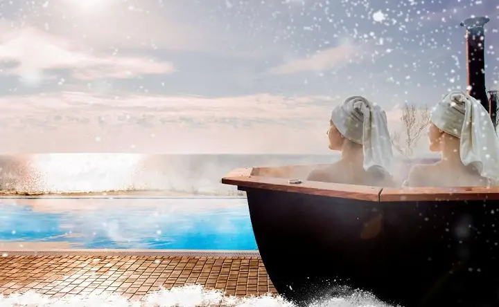 В спа-билет входит: посещение открытого термального бассейна с подогревом +33°С с видом на море, горячее джакузи +39°С под открытым небом, две панорамные сауны, банный дворик, обогреваемый шатер +26°С с видом на море для отдыха после купания, детский уголок с тёплым полом и развлечениями, пока родители отдыхают и другое. Всё это будет соединено закрытыми от ветра коридорами.