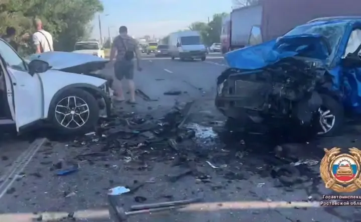 По словам очевидцев, женщина за рулём Land Rover вела себя неадекватно. Протаранив несколько машин, она попыталась скрыться с места происшествия, но влетела в столб с дорожным знаком. Кроме того, ростовчане в соцсетях уверяют, что до этого массового ДТП она врезалась ещё в несколько машин на других улицах Западного.