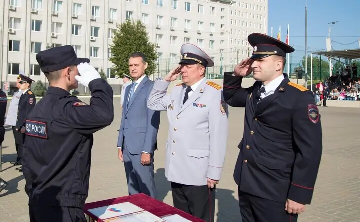 С принятием присяги сотрудника органов внутренних дел первокурсников поздравили заместитель губернатора Ростовской области Михаил Корнеев и заместитель начальника УТ МВД России по Северо-Кавказскому федеральному округу полковник полиции Сергей Крохин.