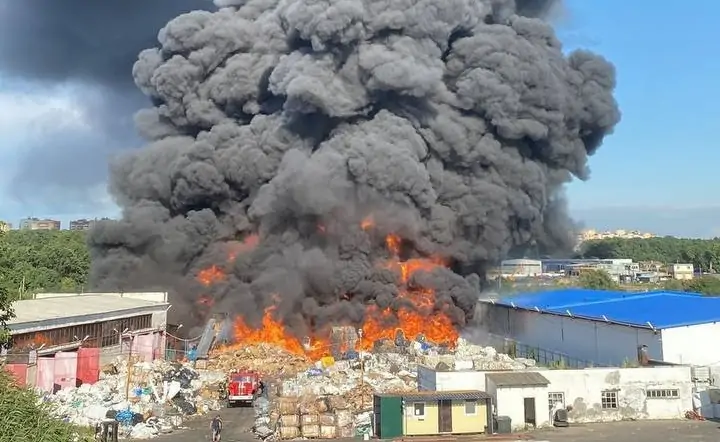 По информации Telegram-канала Don Mash, огонь уже подобрался к ближайшему зданию склада по переработке вторсырья и трансформаторной будке с другой стороны.