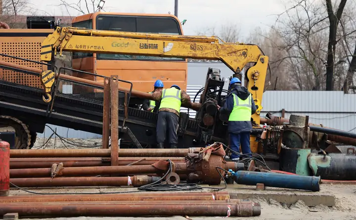 Подрядчиком строительства объекта выбрали ООО «Союздонстрой». Специалисты компании с помощью буровой техники готовят для прокладки трубопровода участок под Доном, находящийся на глубине 8 метров.