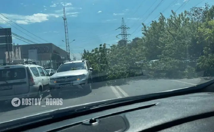 В Ростове на Театральном проспекте между Шолохова и Текучёва прямо на дорогу рухнуло большое дерево. ЧП произошло днём в пятницу, 13 мая.