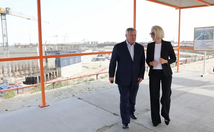 Василий Голубев вместе с Викторией Абрамченко побывали на стройплощадке Багаевского гидроузла. Они познакомились со строительством объектов, которые должны быть введены в эксплуатацию во втором квартале 2025 года: водосбросной плотины, нижней головы судоходного шлюза, головного регулятора рыбоходно-нерестового канала.