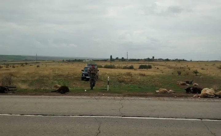 По данным отдела пропаганды УГИБДД по Ростовской области, мужчина, управляя Lada Largus, заметил на обочине стадо баранов, снизил скорость, но в этот момент животные бесконтрольно выбежали на дорогу. В результате 14 баранов погибли. Машина получила механические повреждения. Водитель Lada не пострадал.