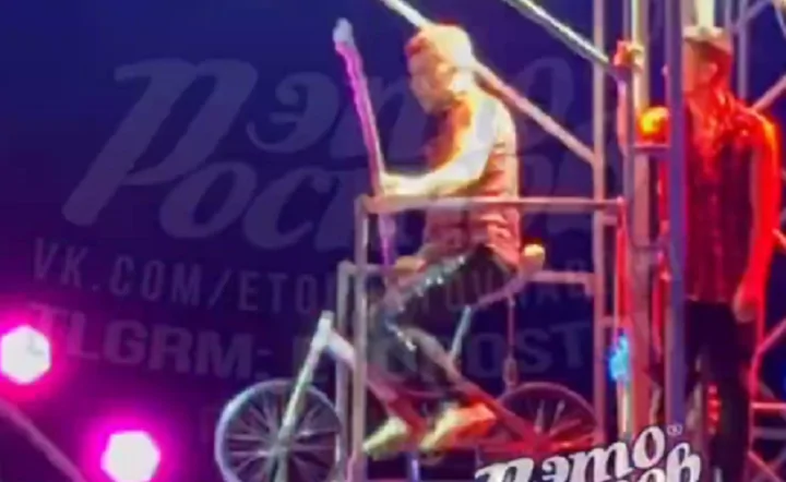 Момент ЧП попал на видео, которое распространилось в соцсетях. На кадрах видно, что трюкач проехал на велосипеде несколько метров по канату, потерял равновесие и упал вниз.