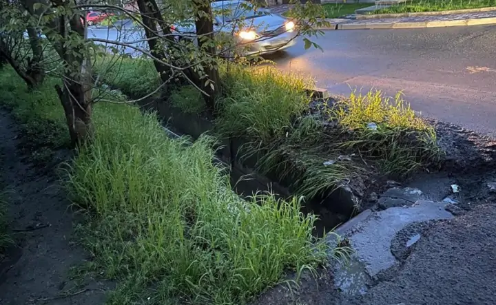 «Во время сегодняшнего дождя тут всё затопило, то есть асфальта не было видно вообще. В этом месте водосток идёт, к которому идёт плита и резко обрывается с тротуара. Она не заметила то, что она идёт уже не по тротуару. И попала в этот водосток, который идёт через дорогу», — сообщил он.