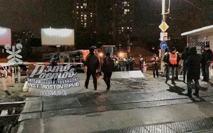 В Ростове в понедельник, 13 декабря, на железнодорожном переезде Нансена — Казахстанский перевернулся «Камаз». ДТП произошло около 22:00.