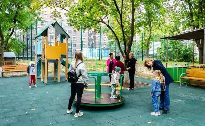 В Ворошиловском районе отремонтировали детскую игровую площадку на проспекте Космонавтов, 23. На ней для малышей установили три игровых комплекса, карусели, качели, песочницы, скамьи. Жители остались довольны, но попросили сделать освещение. Алексей Логвиненко поручил ответственным взять просьбу в работу.