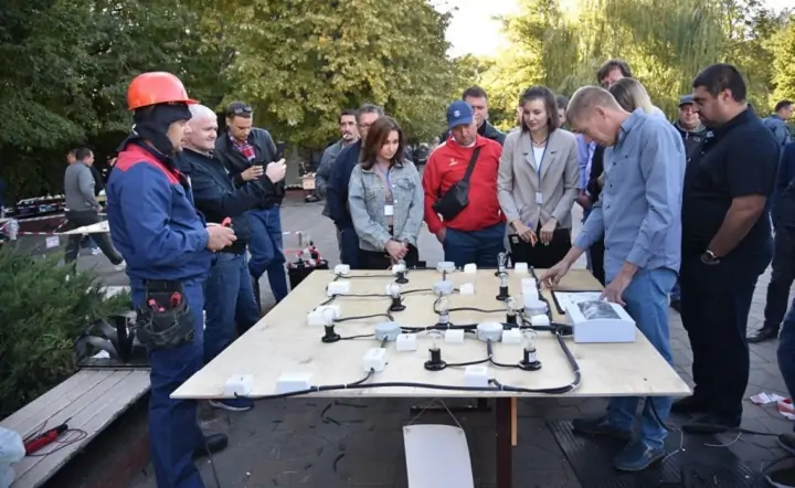 Помимо традиционных «визитки-представления» и теоретического этапа, участники должны были смонтировать внутриквартирную электропроводку на макете в соответствии со схемой. Она была непростой, а на выполнение задания ушло 4 часа.