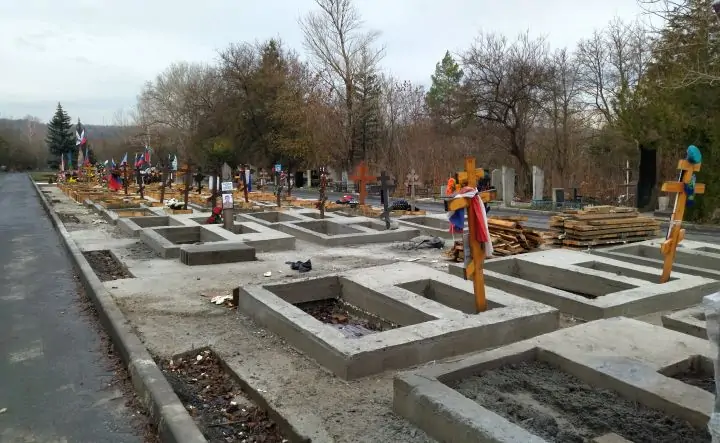 Однако по состоянию на 5 декабря готовы только цоколи индивидуальных и родственных захоронений, идёт демонтаж опалубки, и рабочие приступили к одному из заключительных этапов — облицовке могил керамогранитом.