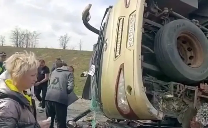 В Чертковском районе 5 апреля около 9:40 перевернулся пассажирский автобус. ДТП произошло на 813-м километре федеральной трассы М4 «Дон».