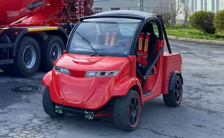 Электромобиль рассчитан на двух человек и, как уверяет производитель, с лёгкостью может ездить по дорогам общего пользования.