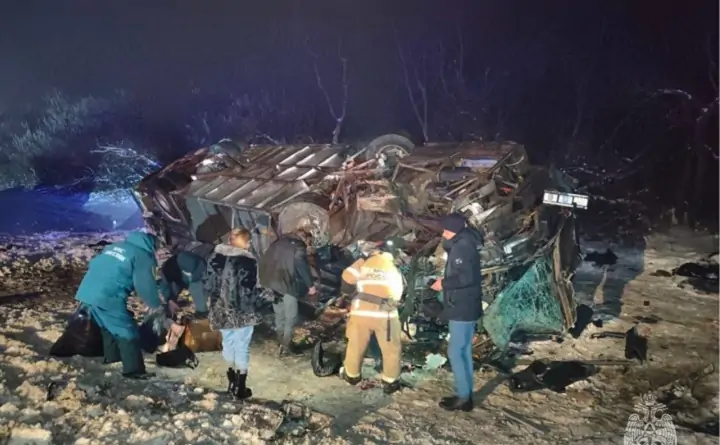 В Миллеровском районе на трассе М4 «Дон» около 23:00 11 февраля произошло смертельное ДТП с легковушкой и рейсовым автобусом, сообщили в пресс-службе МЧС России. От удара автобус вылетел в кювет и перевернулся.