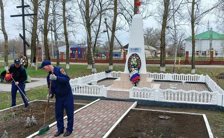 Накануне Дня Победы специалисты Старостаничного поисково-спасательного отряда навели порядок возле захоронений ветеранов Великой Отечественной войны в Каменском районе: спилили сухостой, очистили памятник от мусора и сухой растительности.
