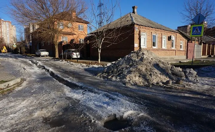 Как сообщили в пресс-службе «Ростовводоканала», наледи на дорогах ликвидируют в круглосуточном режиме «около 12 единиц спецтехники». Уже якобы счистили лёд на Коммунистическом, Вавилова, на пересечении Халтуринского и Народного Ополчения, Киргизской.