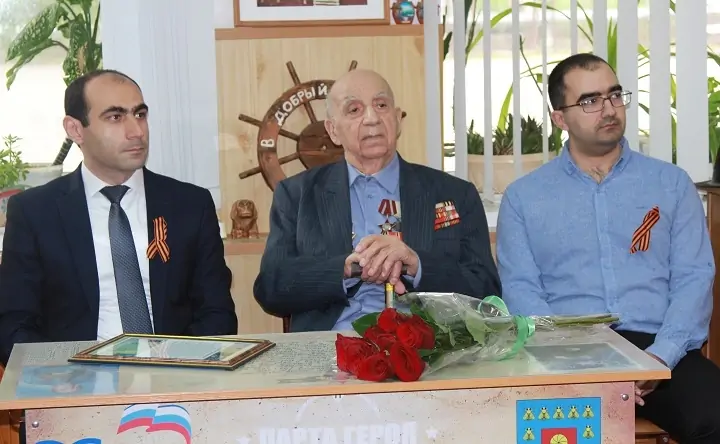 В МБОУ Чалтырской СОШ № 1 в селе Чалтырь Ростовской области 9 мая открыли Парту героя в честь местного жителя — 98-летнего участника Великой Отечественной войны Калуста Христофоровича Магояна. С Днём Победы приехал его поздравить председатель комиссии Общественной палаты Ростовской области по экономической политике, предпринимательству, инновациям, туризму и цифровому развитию Александр Нечушкин.