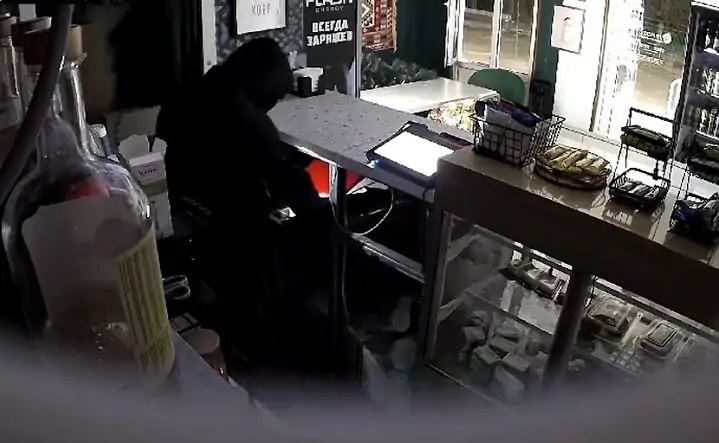 В распоряжении donnews.ru оказались кадры с камеры видеонаблюдения. На видеозаписи слышно, как звучит сигнализация, а затем из магазина неспешно выходит мужчина в чёрной кофте с капюшоном.