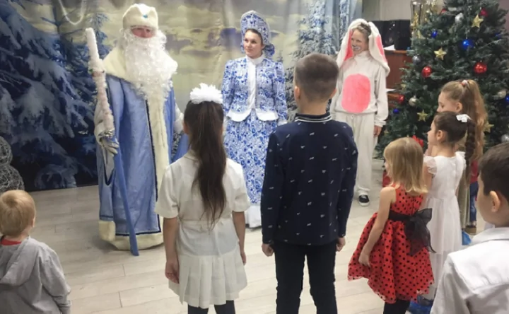 Приглашённые аниматоры провели детскую развлекательную программу с хороводом, конкурсами и творческими номерами. Каждый участник получил новогодний подарок от Деда Мороза.