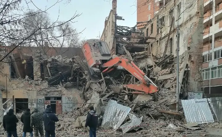 В центре Ростова при сносе старинного дома на Социалистической/Чехова с третьего этажа вместе с перекрытиями рухнул работающих экскаватор. ЧП произошло днём 23 декабря. Как сообщили очевидцы группы соцсети Вконтакте, водитель спецтехники отделался ссадинами и ушибами.