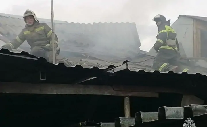 Огонь угрожал перекинуться на рядом стоящий дом. Огнеборцы вывели оттуда пожилую женщину, которая едва не надышалась дымом.