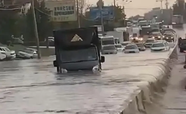 В Ростове во время ливня, который прошёл 14 ноября, вновь затопило часть улицы Оганова на Военведе. По словам ростовчанина, который написал об этом в комментариях Telegram-канала Алексея Логвиненко, из-за того что улица превращается в реку, постоянно образуются многокилометровые пробки.