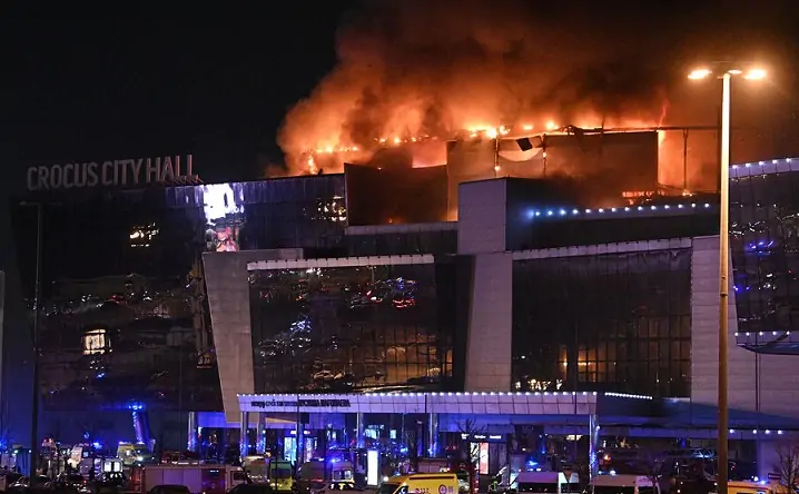 22 марта около 20:00 неизвестные ворвались в концертный зал «Крокус Сити Холл» в Красногорске и открыли стрельбу. После они бросили гранату или зажигательную шашку, после чего в здании начался пожар. По предварительной информации ФСБ, более 60 человек погибли, пострадали более 140 ранены.