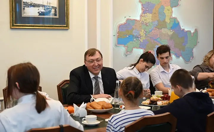 Вторая экскурсия прошла в здании Законодательного собрания и правительства Ростовской области. Школьники пообщались с председателем регионального парламента Александром Ищенко.