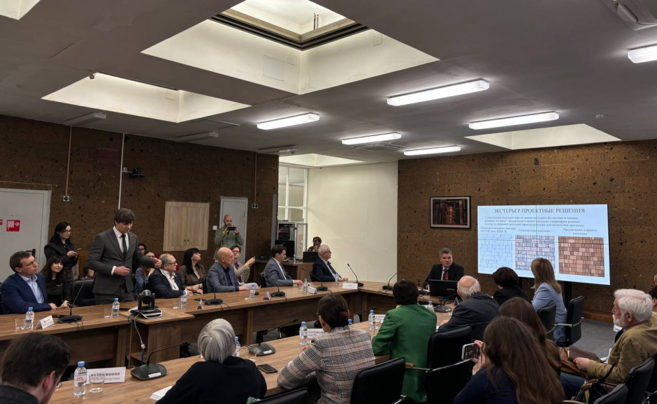 Из зала прозвучал вопрос о судьбе барельефов, расположенных под крышей здания. По словам Селезнёва, их перекрывать новым камнем не будут, а только очистят от грязи.