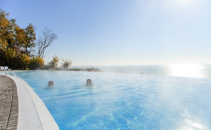 — детский открытый тёплый бассейн на высоте 40 метров над уровнем моря;