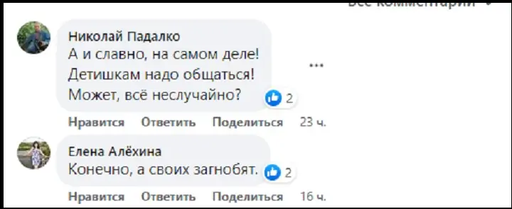 «Вчера только напечатали, что дети пойдут в ростовские школы, сразу начался понос у многих. Дитяток их будут притеснять. Что будут учить детей, чтобы их чморили. Это не стравливание? Естественно, люди будут защищаться. А кого потом обвинят? Догадайтесь сами», — написала Надежда Сычёва.