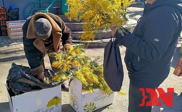 Самый большой базар с мимозой в этом году открылся на площади перед Центральным рынком