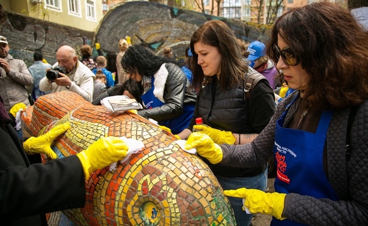 С конца апреля до конца сентября 2021 года координаторы движения «Том Сойер Фест» совместно с добровольцами работали над реставрацией мозаичной скульптуры «Рыбка и волна», расположенной на улице Пушкинской. Шедевр советского монументализма волонтёры очистили от граффити, пыли и грязи, также они вернули к жизни уникальные фрагменты мозаики, зафиксировав хрупкие детали малярным скотчем с фотофиксацией. Скульптуру восстанавливали на собственном энтузиазме сотни участвующих горожан.