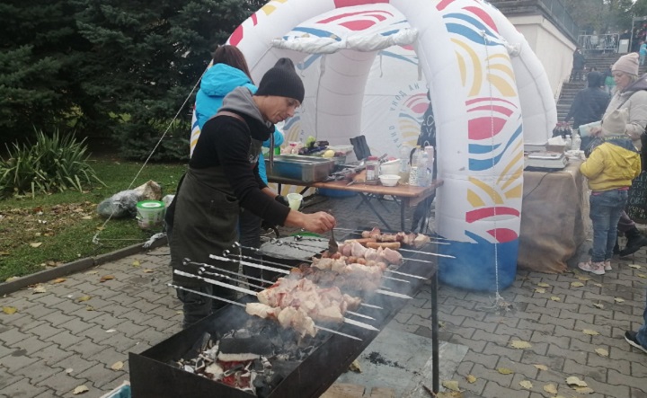 И, действительно, у гостей разбегались глаза от ассортимента: шашлык, мраморная говядина, самса, классический гирос, халва, вишнёвый, яблочный, грушёвый и орехово-банановый пироги, горячие и прохладительные напитки и многое другое.