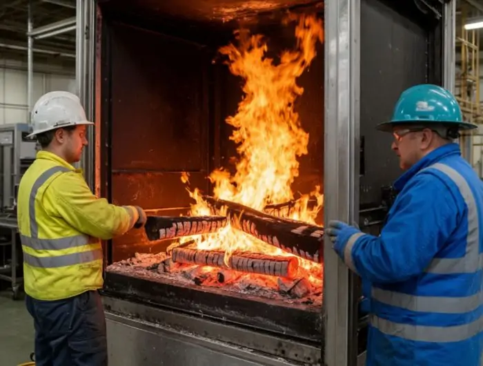 Огневые испытания, при которых дверь или люк подвергается воздействию пламени и высоких температур, имитируя условия реального пожара.