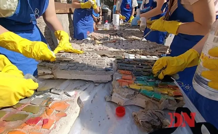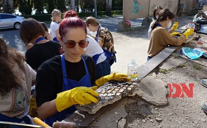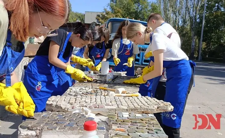 Реставрация мозаичного панно с ресторана «Балканы» ростовской командой фестиваля «Том Сойер Фест». Фото donnews.ru