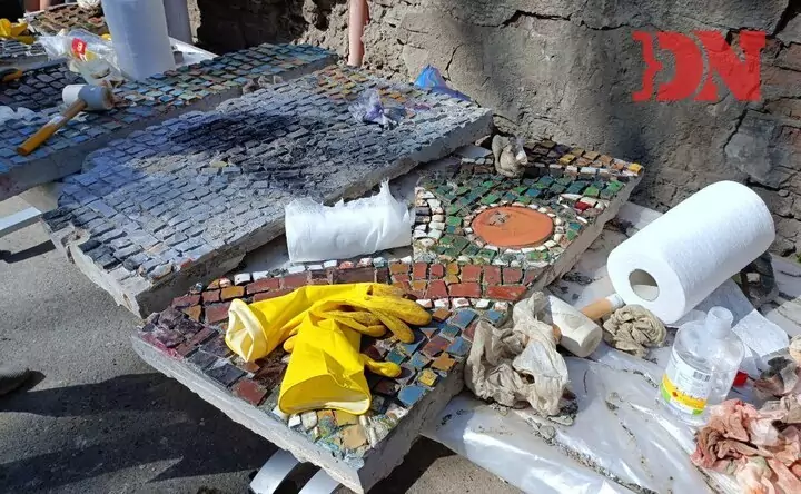 — Мы сняли весь фасад — вырезали стенные плиты, убрали арматуру, разбили на модули. Сейчас мозаика в ужасном состоянии: особенно верхний левый край — в крыше была дыра и на неё текла вода. 20% плит — в крошку! Будем их восстанавливать и воссоздавать рисунок. Есть архивные фото. Работа колоссальная... Я дала себе год на неё, — рассказала она.