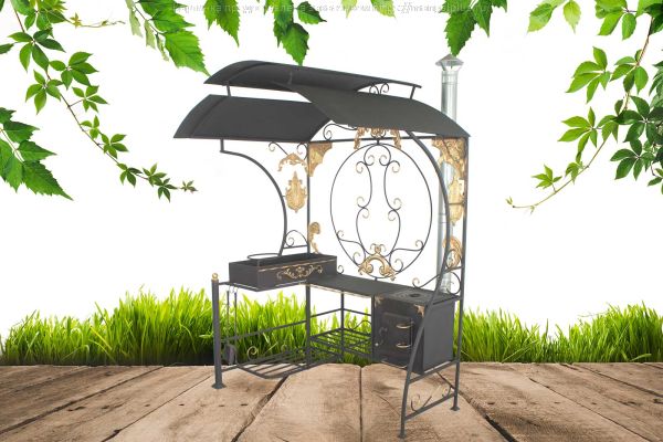 - часто такие мангалы очень красиво декорируют ковкой, и служат не только по прямому назначению, но и украшением под ваш загородный дом.