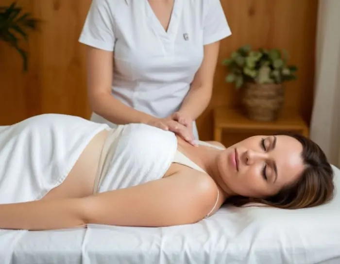 - Поддержка температуры тела — важнее, чем подогрев. После сеанса — рядом должна быть лёгкая шерстяная или хлопковая накидка. Женщине нужно, чтобы ей было тепло — не только на столе, но и после него.