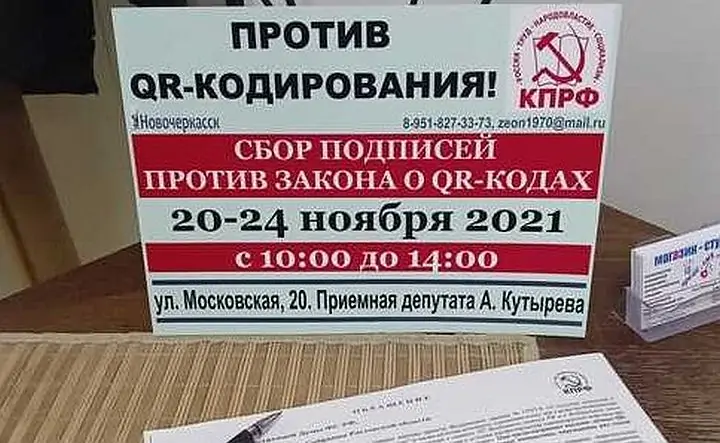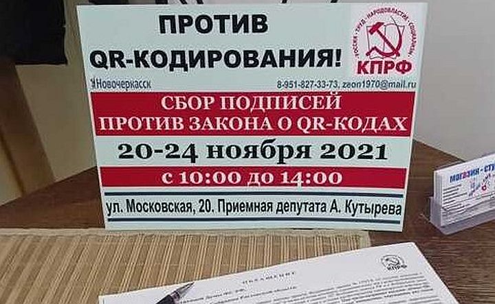 Ростовский областной комитет КПРФ инициировал сбор подписей против введения QR-кодов для доступа граждан в общественные места и к транспортным услугам. Данные законодательные инициативы, по-мнению коммунистов, нарушают ряд статей Конституции страны и «могут самым существенным образом ущемить права десятков миллионов людей».